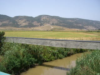 私たちは75号線をさらに西に行き、722号線に左折、南に下りました。カルメル山に行く途中、「キション川」を渡る橋があります(Googleの航空写真)。ここで私たちは写真を撮りました。背景に見えるのがカルメル山脈です。