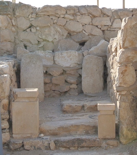 matzeva)が二つあります。左側の香壇と石の柱が、ヤハウェに対するものであり、右側の香壇と石の柱がカナン人の神に対するものです。